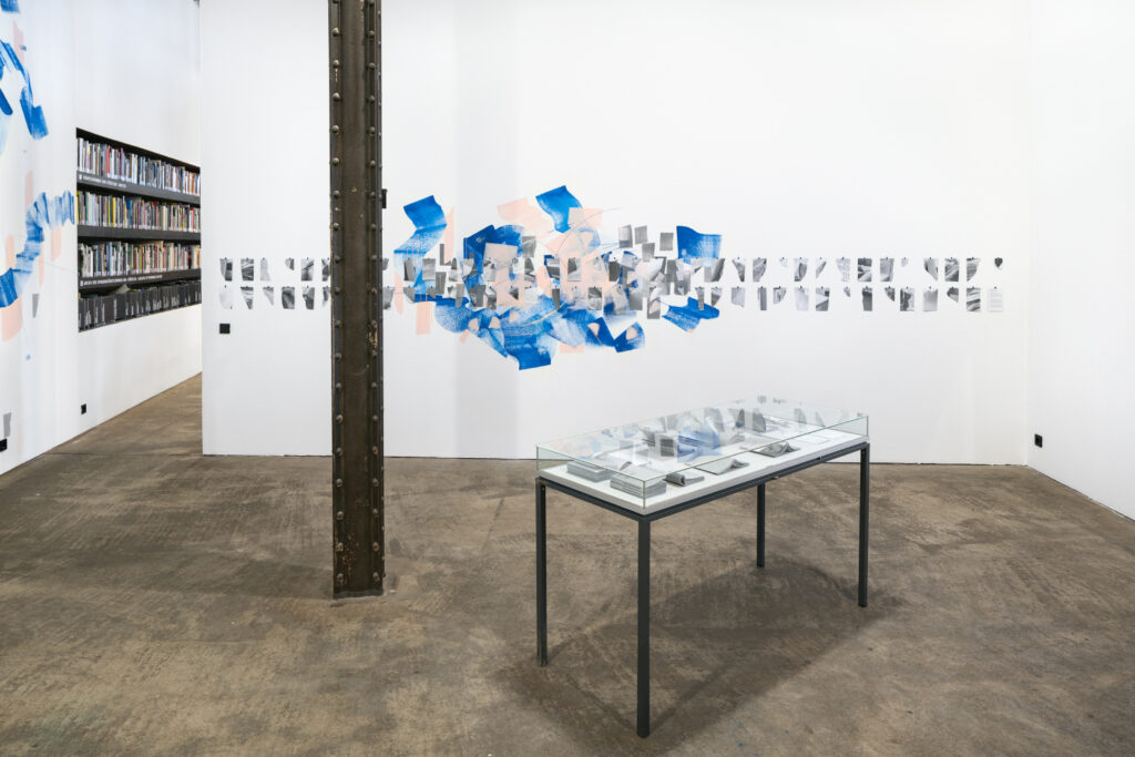 Im Projektraum der HALLE 14 stehen sich eine wachsende Arbeit, die Wandgestaltung von Lena Schrieb und „unbooking (un)booking“ von Marina Kampka gegenüber. Sie behandeln die Interaktion zwischen Mensch und Objekt, Konstruktion und Dekonstruktion in Form von Video, Buch, Druckgrafik, Malerei und Zeichnung. Zirka vierzig Quadratmeter Wand begegnen in der Präsentation „least common multiple“ dem auffällig kleineren Buchraum, einer Print-On-Demand-Publikation von Marina Kampka, sowie einer Video-Arbeit. Lena Schrieb, Heimspiel-Stipendiatin der Kulturstiftung des Freistaates Sachsen von 2025, baut ihr Motiv schrittweise auf, indem sie mit verschiedenen Werkzeugen Bezüge zu Raum und Büchern schafft, welche in unmittelbarer Umgebung des Projektraums in der Bibliothek der HALLE 14 auf ihre Nutzung warten. Sie ist am Anfang der Ausstellung bei der Arbeit auf dem Gerüst anzutreffen.